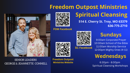 Freedom Outpost Ministries is an Apostolic Center that houses a ministry of inner healing and deliverance with an emphasis on missions, church planting, intercession,